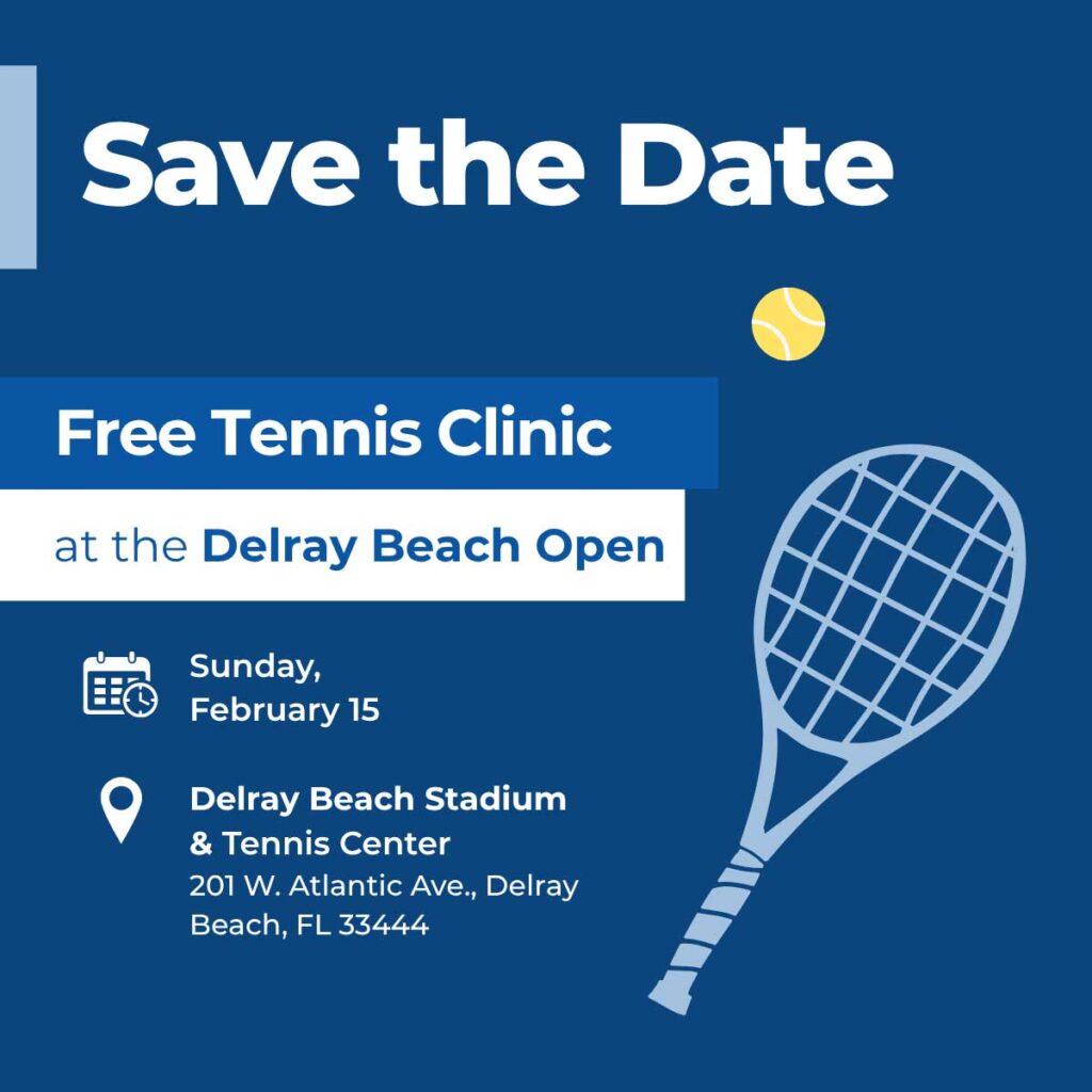 Join us for a free and fun ACEing Autism tennis clinic at the Delray Beach Tennis Center! Beginners are welcome. You and your child will have the chance to meet other families, connect with the ACEing Autism team, and engage with local organizations. You’ll also be able to learn more about our programs and how to get involved.