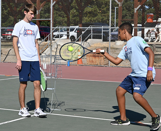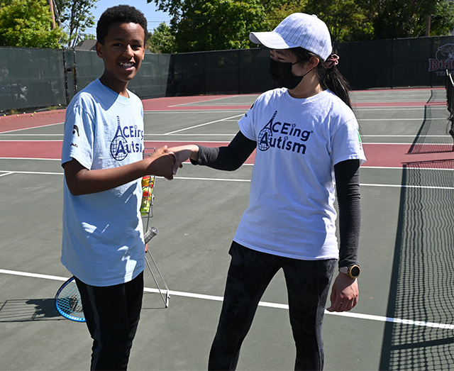 When the middle school student first came to ACEing Autism in the Spring of 2022, Yacob had to be chased around the court most of the time and only did a few drills and games throughout the clinics. But little by little, he got more interested in tennis, and started to engage more with the volunteers and the clinic in general. “It’s a joy to see him like that,” Yacob’s mom cheerfully said. “He is making connections now, he even knows some of the volunteers’ names so you can tell he is responding. In the past two weeks, they showed him how to serve and sometimes they were telling him to hit a little softer and he did!”